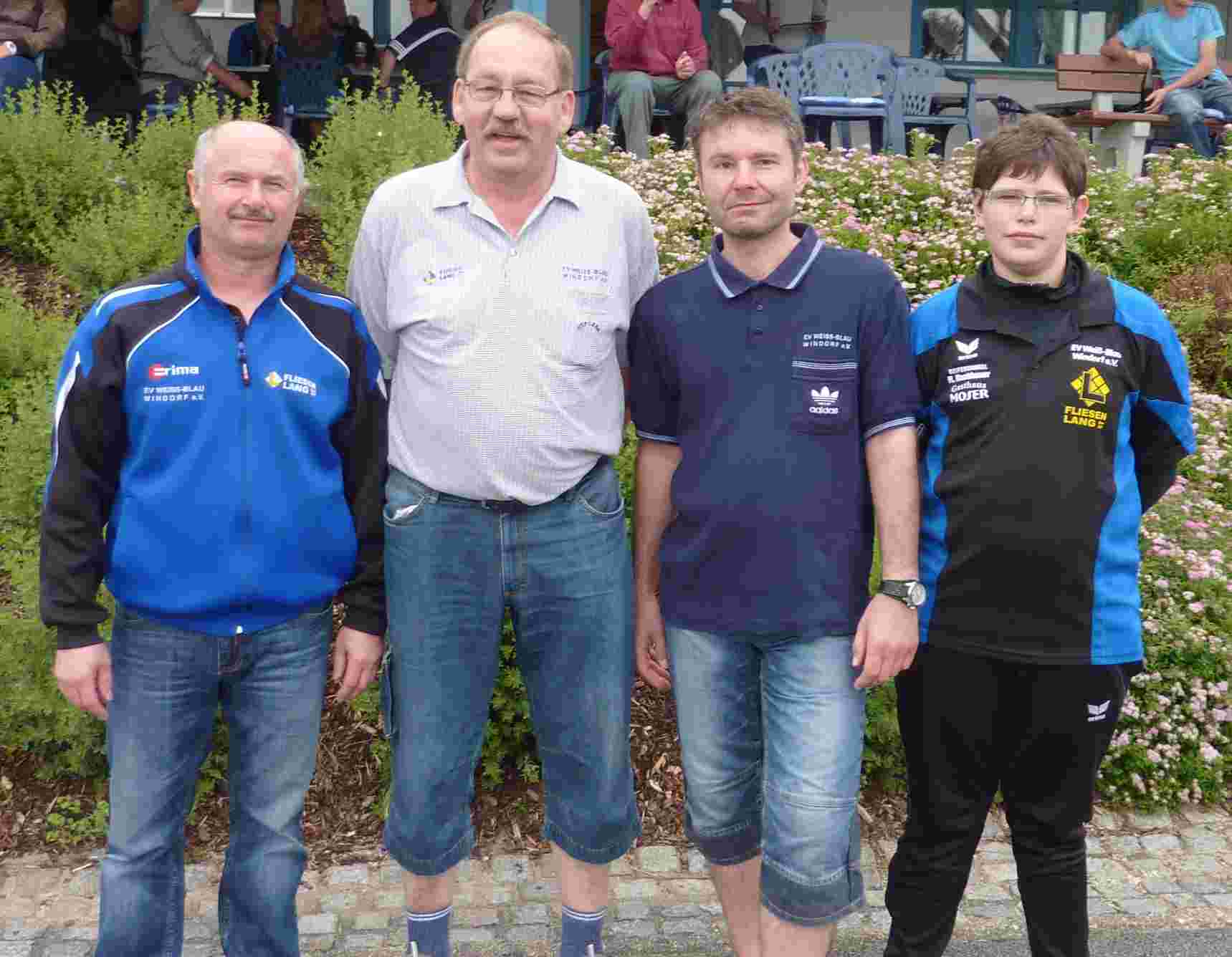 Der EV Weiß-Blau Windorf veranstaltet seit 1997 auf den vereinseigenen Asphaltbahnen eine Vereinsmeisterschaft in der Mannschaftswertung, bei der alle aktiven und passiven Mitglieder gleichermaßen teilnehmen können. Um eine Chancengleichheit für jedermann zu gewährleisten, werden vor Turnierbeginn die vier Schützen einer jeweiligen Mannschaft ausgelost. Im nachfolgenden sind diese Schützen des betreffenden Jahres -teilweise mit Bild- angeführt: |